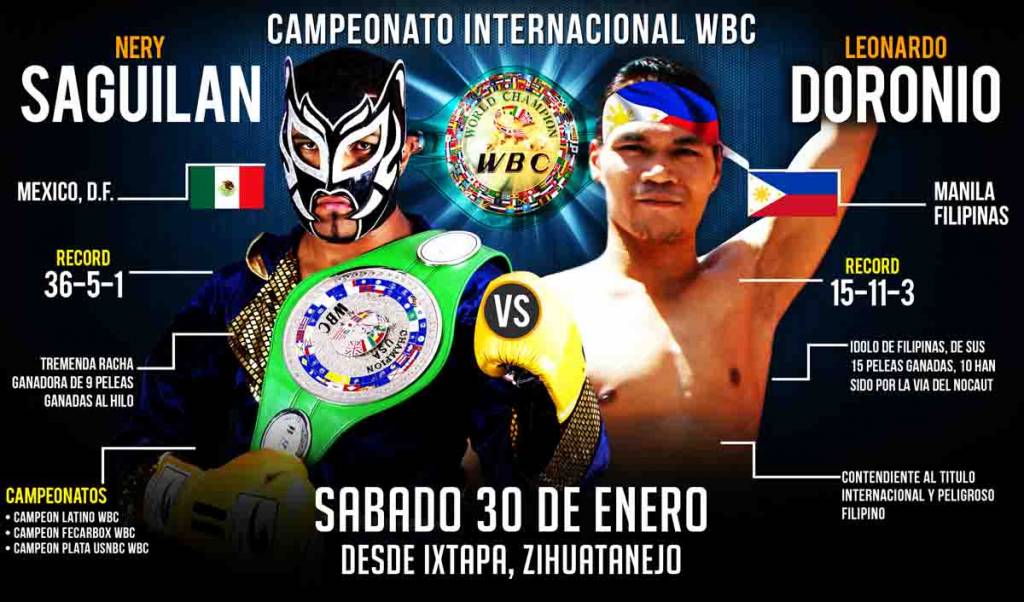 El choque entre Saguilán y Doronio encabeza la cartelera que presenta Promociones del Pueblo con el apoyo de Playboy México y que será transmitido a todo el país completamente en vivo por las pantallas de Televisa Deportes en sus ya tradicionales “Sábados de Box“ que semana a semana acaparan la audiencia de millones de aficionados.
