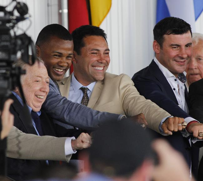 Prensa AMB. 08 de junio.- Hoy se realizó la Ceremonia que inmortalizará a figuras del boxeo en el Salón de la Fama, en Canastota. Nombres como los campeones de la Asociación Mundial de Boxeo, Oscar de la Hoya, Félix “Tito” Trinidad y Joe Calzaghe destacan en el grupo de este año.
