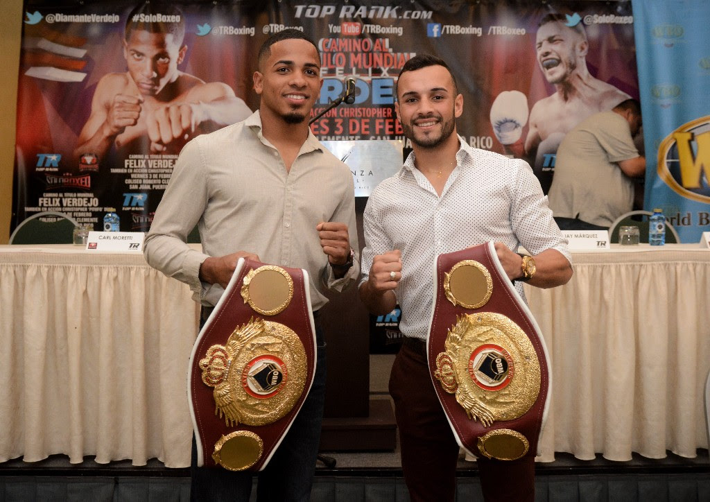 SAN JUAN, P.R. (11 de enero del 2017) – Los invictos contendientes puertorriqueños Félix ‘El Diamante’ Verdejo y Christopher ‘Pitufo’ Díaz aseguraron que le regalarán un gran espectáculo a la afición boricua el viernes 3 de febrero en el cartel ‘Solo Boxeo’ que será estelarizado por los respectivos combates de ambos en el Coliseo Roberto Clemente de la capital borinqueña.