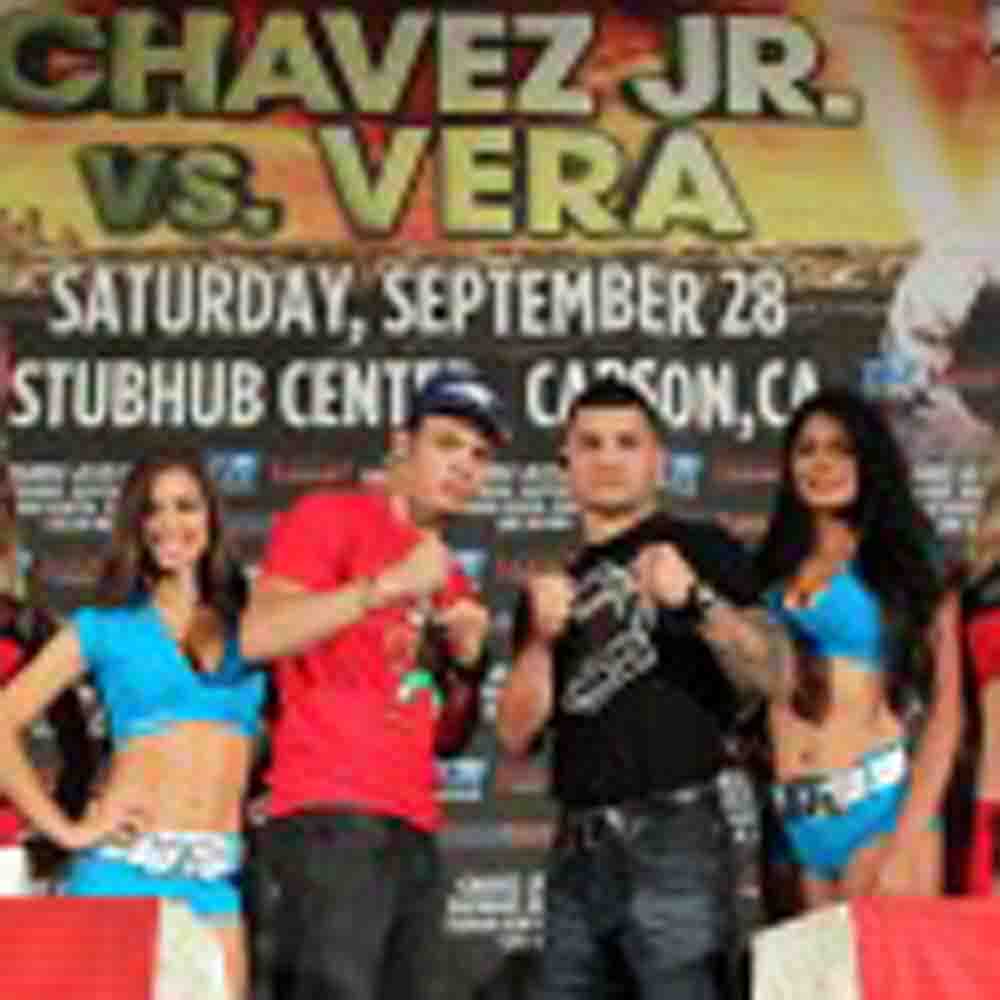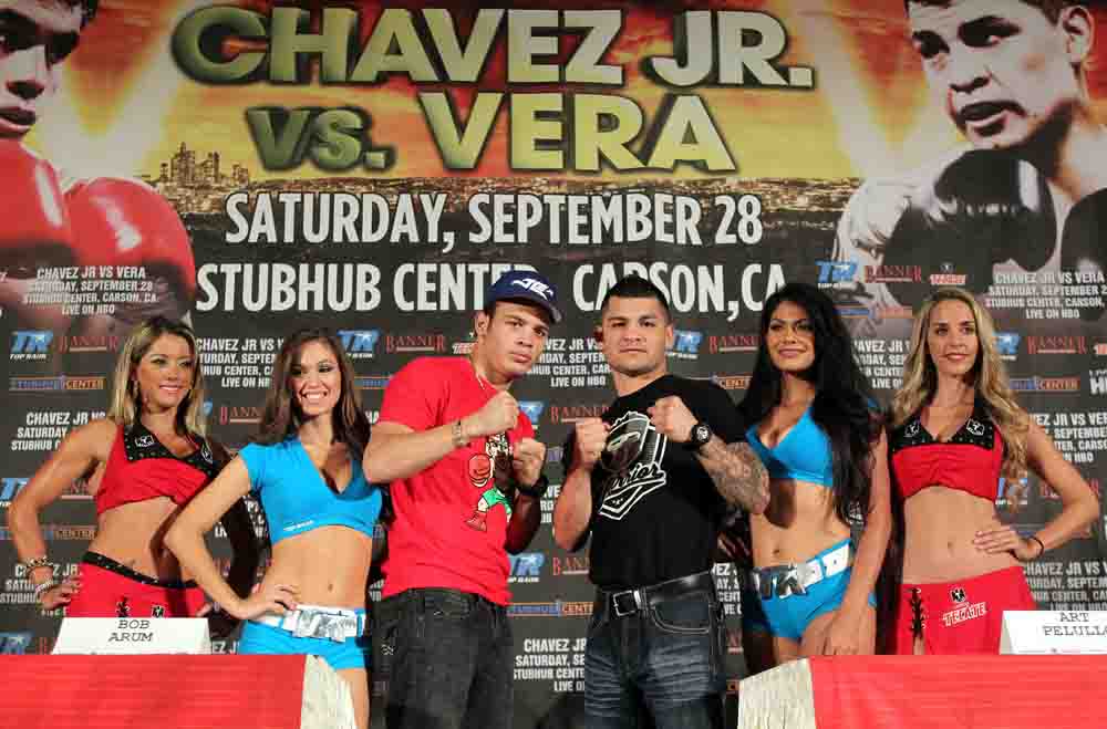 Chávez junior (46-1-1, 32 ko’s) va contra el texano Brian Vera (23-6-0, 14 ko’s) a 10 rounds en peso Supermedio, en función de Zanfer y Top Rank en el StubHub Center de Carson, California, en acciones que podrán ser vistas en el mundo por HBO y México por la señal de la “Casa del Boxeo”, Azteca 7.