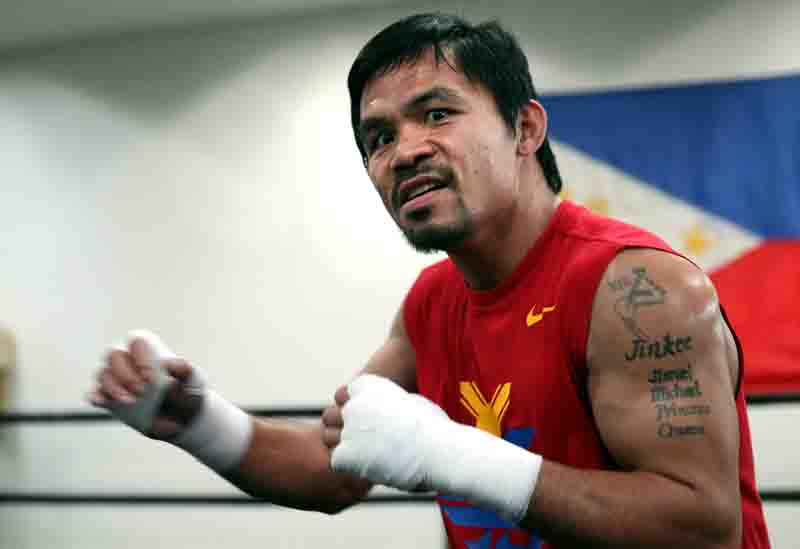 Dia 8, el ocho veces campeón en ocho diferente categorías Manny “Pac-Man” Pacquiao entrenando para su encuentro con el once veces campeón en cinco diferentes categoria Floyd “Money” Mayweather