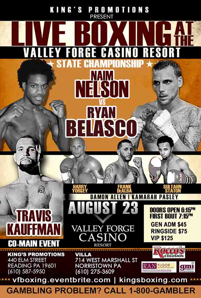 In the main event, undefeated Naim Nelson (10-0, 1 KO) of Philadelphia defends the Pennsylvania Lightweight title against Ryan Belasco (18-5-3, 3 KO’s) of Wilmington, Delaware.