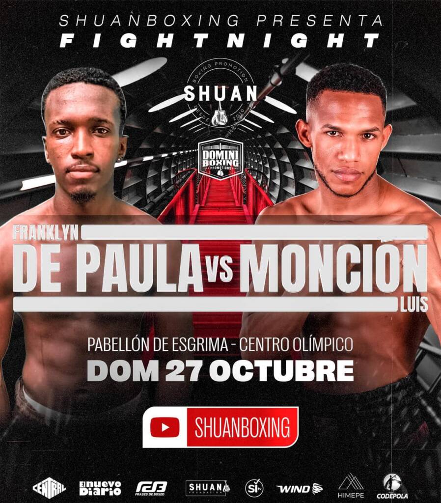 La noche del 27 de octubre se estará viviendo una revancha que promete ser mucho más explosiva que el primer episodio de la historia entre Franklyn De Paula y Luis Monción, misma que se llevará a cabo en las instalaciones del Pabellón de Esgrima del Centro Olímpico y contará además con la promoción y organización de Shuan Boxing Promotions y su CEO, la señora Bélgica Peña.