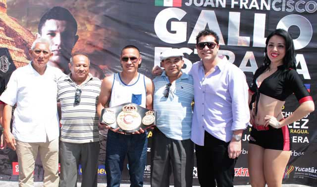 Las empresas Max Boxing y Zanfer anunciaron hoy aquí la cuarta defensa del campeón mundial mosca de la AMB y la OMB, el sonorense Juan Francisco “Gallo” Estrada, la cual realizará en esta ciudad el 28 de marzo próximo ante el desafiante filipino Froilán “El Francotirador” Saludar en una magna función que se verificará en el renovado Polifórum Zamná, máxima sede del boxeo en el sur del país con transmisión de Azteca 7 a través de su serial semanal “Box Azteca”
