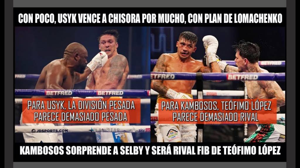 Cuando Chisora quedó sin combustible, el ucraniano empezó a trabajar para los jueces, boxeo elegante, buen cuerpeo, combinaciones atractivas y desplazamientos técnicos con lujo olímpico. Llenó el ojo y con la suma de ese prestigio cosechado en los cruceros, le alcanzó a vencer a un rival fuera de rango y que ha perdido ante todo rival de primera línea enfrentado.Usyk no parece que dará ‘pie con bola’ en los pesados, algo que lo explico en el video.