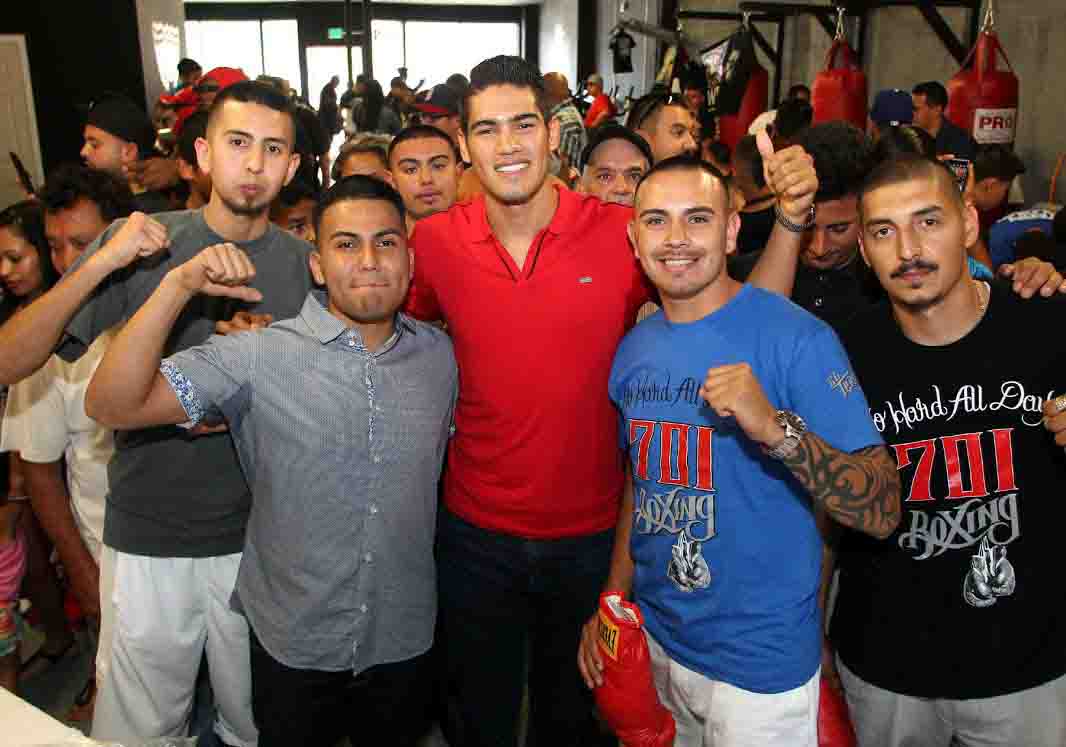 El clasificado mundial invicto GILBERTO “Zurdo” RAMIREZ, uno de los más populares y carismáticos boxeadores de México, tuvo la oportunidad de convivir con aficionados hoy domingo en la apertura del gimnasio de “New Generation Academy” en Lywood, California en una evento promovido por “WBC Cares” en el cual varios boxeadores estuvieron presentes.