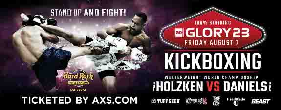 New York, NY – GLORY, the world’s premier kickboxing league, today announced the finalized fight card for its next pure striking event, as The Joint at Hard Rock Hotel & Casino Las Vegas plays host to GLORY 23 on Friday, Aug. 7. The action-packed five-fight affair airs live on Spike TV at 11/10c.