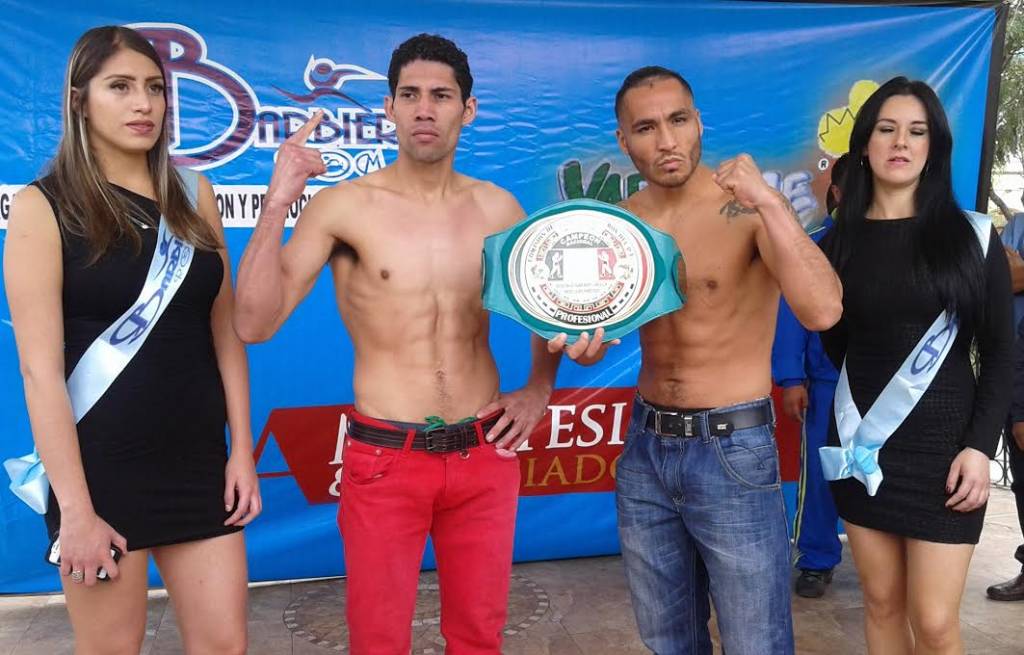 En lo que fue la ceremonia de pesaje que se desarrolló en la explanada de la presidencia Municipal de San Juan Teotihuacán, ambos pugilistas dieron un peso idéntico 68.700 kilogramos. La regidora Andrea Sánchez Galicia presenció las actividades, en representación del Presidente Municipal Arturo Cantú Nieves.