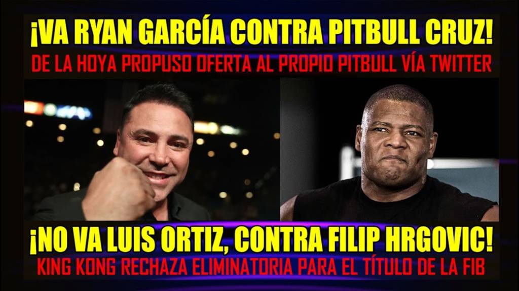 Las dos novedades más importantes del martes.. Luis Ortíz, sorpresivamente, rechazó la eliminatoria contra Filip Hrgovic por el título del peso pesado FIB. En el otro impacto de la jornada, en un cambio de opinión radical, Oscar De la Hoya ahora acepta la pelea de Ryan García vs. Isacc Pitbull Cruz e inicia la gestión con un tuit enviado al propio Pitbull ¿Por qué se aparta King Kong? ¿Por qué Oscar cambió de opinión? En el video tenemos la historia y las respuestas.