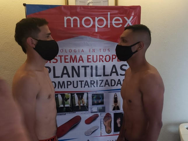Marcelo Vargas (izquierda) y Juan José Velasco (derecha) cara a cara luego del pesaje