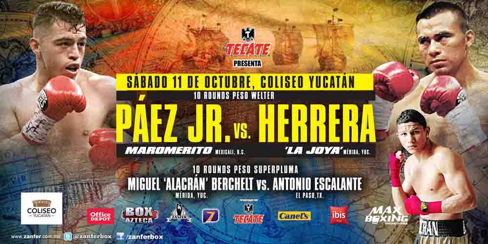 Herrera (32-3, 19 kos) , uno de las promesas más sólidas de México para hacer ruido a nivel internacional en la división de los Superligeros enfrentará al experimentado y combativo Páez (44-5-1, 22 kos) en un peso pactado, lo que permitirá un esperado pleito de pronóstico reservado.