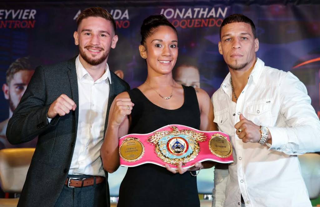 Con Amanda Serrano, Jeyvier Cintrón (izquierda) y Jonathan Oquendo (derecha) en los combates principales (fotos y video: Iván Ojeda-PRBBP)