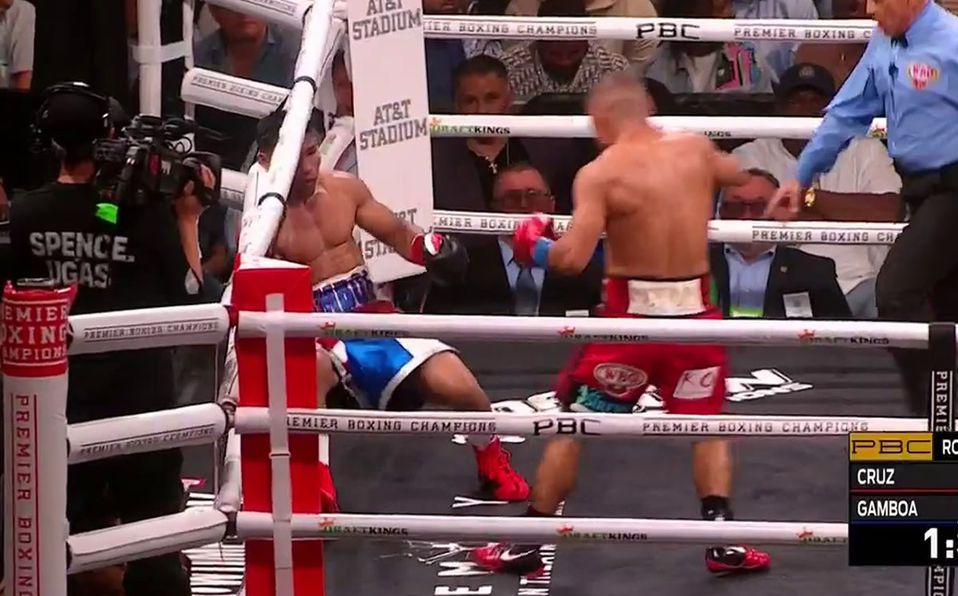 En la ronda antes de que terminara su pelea, Cruz recortó a Gamboa con un gancho de izquierda que lo envió a una rodilla con unos 30 segundos por delante en el cuarto asalto. Eso marcó la tercera ronda consecutiva en la que Gamboa golpeó la lona.