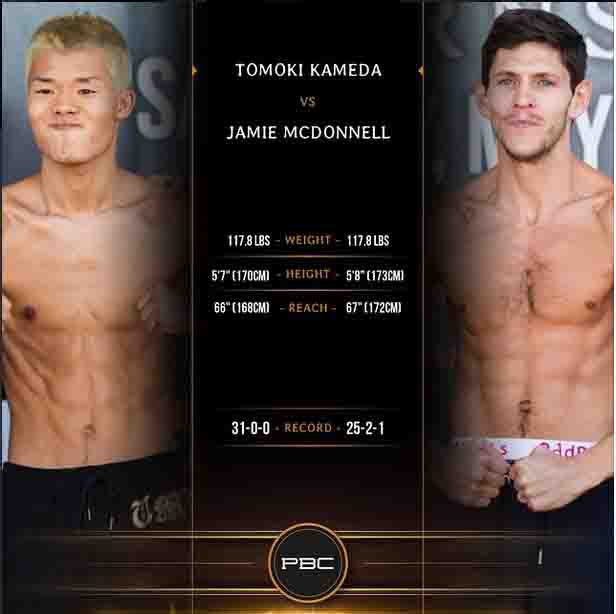 Prensa AMB. 08 de mayo.- El campeón gallo 118 libras de la Asociación Mundial de Boxeo el británico Jamie McDonnell y su retador, el japonés Tomoki Kameda cumplieron con el pesaje realizado en Hidalgo, Texas.