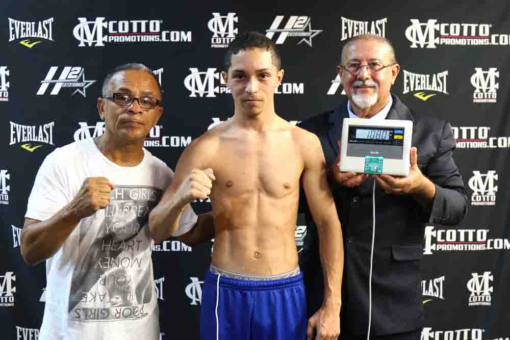 Janiel ‘Pototo’ Rivera con record profesional de 12-2-3 y siete nocauts detuvo la báscula en 123.6 libras mientras que Israel ‘Heredero’ Vázquez con marca profesional de 9-2-2 y seis nocauts registró 108 libras. El pre pesaje estuvo supervisado por el Dr. Jorge Colón enviado por el Consejo Mundial de Boxeo quién certificó ambos pesos.