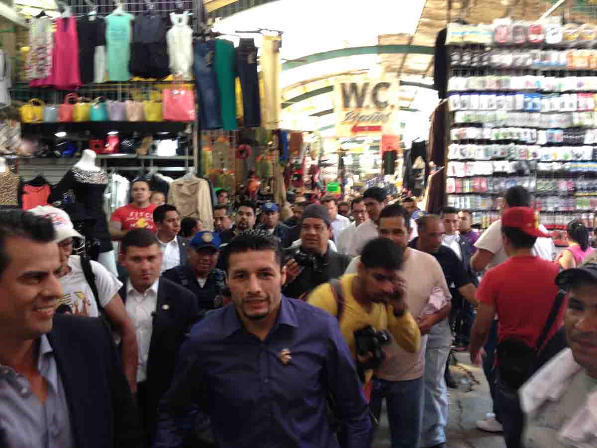 Tremendo tumulto causo en Tepito (en el Centro Histórico de la capital mexicana), el monarca pluma del Consejo Mundial de Boxeo (WBC, por sus siglas en inglés), a su paso por las calles del populoso barrio, luego de asistir al anuncio del programa “Boxeando por un México Seguro”. Jhonny González, quien fue nombrado embajador de dicho programa, junto con la bella y talentosa Mariana “Barby” Juárez, fue asediado por cientos de seguidores que al reconocerlo a su paso, de manera insistente le pedían el autógrafo y la foto del recuerdo.