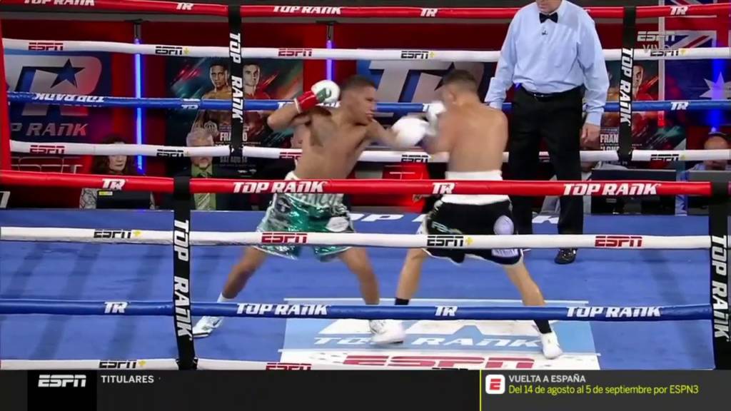 Una combinación derecha-izquierda de Franco aterrizó con aproximadamente 15 segundos en el reloj en la segunda ronda. Franco atrapó a Moloney con una derecha que hizo que Moloney lo sujetara con unos 15 segundos para el final del primer asalto. Antes de que aterrizara el golpe que definió la ronda de Franco, en su mayoría intercambiaron jab durante la ronda inicial. Franco venció por poco a Moloney por decisión unánime en su fantástica primera pelea: una pelea de 12 asaltos en junio de 2020 en el MGM Grand Conference Center en Las Vegas. Anotó una caída en el undécimo asalto y superó a Moloney por puntuaciones de 115-112, 114-113 y 114-113.