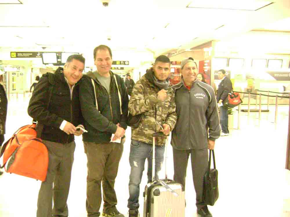 Acompañado de su equipo de trabajo y con las maletas llenas de planes y proyectos, entre los que se encuentra entrar en el gusto de la afición estadounidense, el púgil capitalino se trasladó a la sede de la que será la cuarta defensa que realice del campeonato superpluma de la Federación Internacional de Boxeo (IBF, por sus siglas inglés), el cual obtuvo precisamente al derrotar por decisión unánime a la “Tormenta” Méndez.