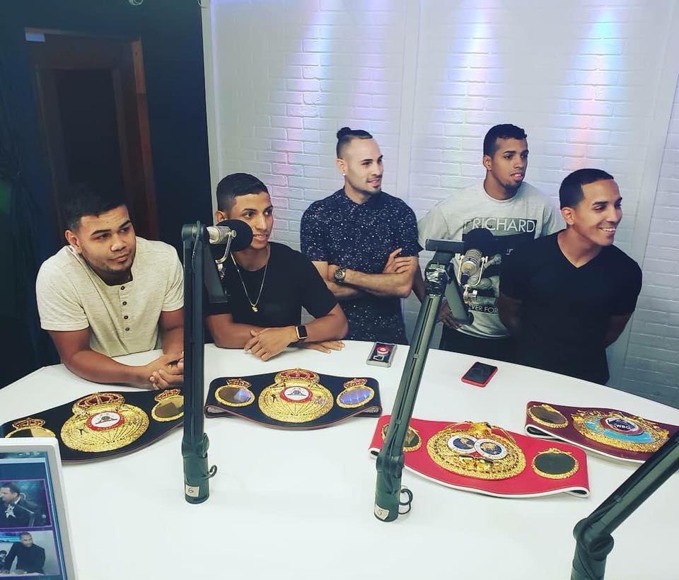 Jesús Rojas, campeón pluma de la AMB, Alberto Machado, campeón súper pluma de la AMB, Emmanuel Rodríguez, campeón gallo de la FIB, José Pedraza, campeón ligero de la OMB y Angel “Tito” Acosta, campeón de lasEl 108 libras de la OMB fueron los campeones que asistieron al programa dedicado 100% al deporte del boxeo.