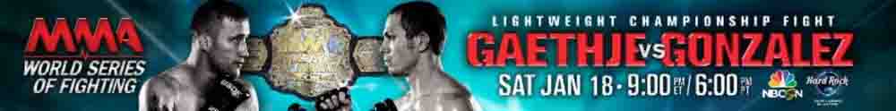 “This past year has been incredible for World Series of Fighting, and I’m proud to be able to carry that success over in the start of 2014 with this incredible lightweight title fight,” World Series of Fighting President Ray Sefo said. “I know that both of these guys have great wrestling backgrounds, but their striking is so impressive. I can’t wait for this one.”