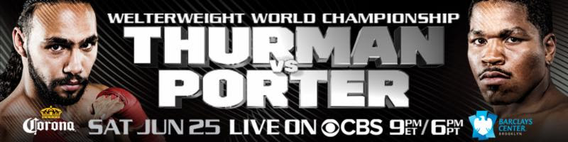The June 25 SHOWTIME CHAMPIONSHIP BOXING® on CBS event, presented by Premier Boxing Champions, is headlined by the world title fight between defending world champion Keith Thurman and former champion Shawn Porter. Televised coverage begins at 9 p.m. ET/6 p.m. PT. The live telecast will open with an exciting battle between undefeated super welterweight prospects Jarrett Hurd and Oscar Molina.