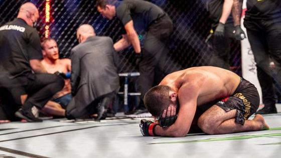 El tiempo oficial fue de un minuto con 34 segundos del segundo capítulo, con el que se retiró Nurmagomedov, dejando atrás un legado impresionante.