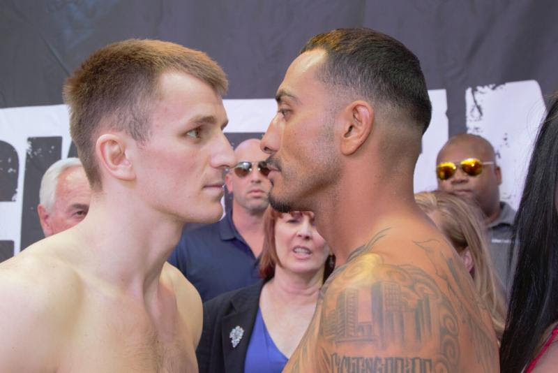 LAS VEGAS (May 20, 2016) – The official weigh-in for tomorrow night’s “Knockout Night at the D” event was held today outdoors at the Freemont Street Experience, 3rd stage, outside of the D Las Vegas. Below find the official weights and pictures.