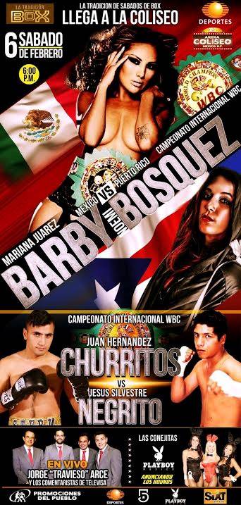 La histórica Arena Coliseo de la Ciudad de México será la sede del esperado combate entre la “Reina de Reinas“ Mariana “Barby“ Juárez y la boricua Noemí “No-No“ Bosques, en un choque donde estará en juego el título Internacional supermosca del Consejo Mundial de Boxeo y que será transmitido a todo el país completamente en vivo por las pantallas de Televisa Deportes.