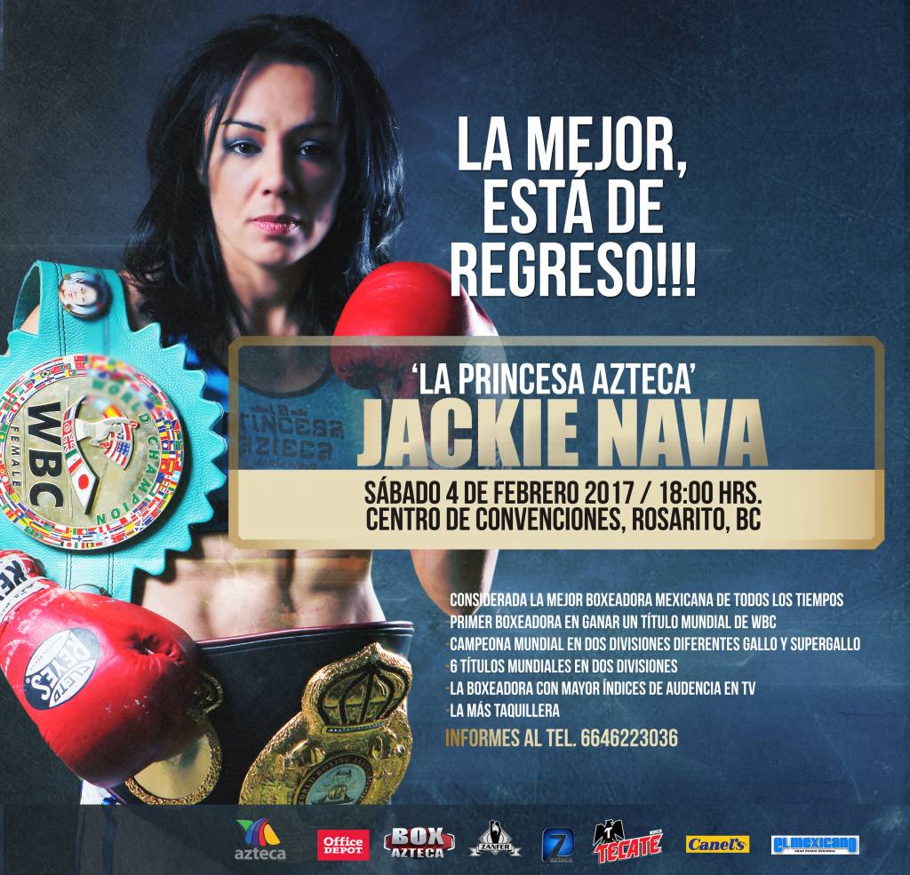 Considerada la mejor boxeadora mexicana de todos los tiempos, la gala de boxeo que encabezará la tijuanense Jackie Nava será transmitida a todo México por Azteca 7, La Casa del Boxeo y al mundo por Beinsports.