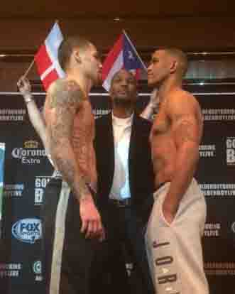 michaelvsacosta2Durante la noche de hoy, el campeón Fedelatin de la Asociación Mundial de Boxeo ( AMB ) en las 140 libras, Michael ‘el Artista’ Pérez ( 21-1-2, 10 KO ) de Lares, Puerto Rico y el ex campeón mundial, Miguel ‘Aguacerito’ Acosta ( 29-7-2, 23 KO ) de Venezuela, marcaron por debajo del establecido peso máximo de 141 libras para su combate de mañana, martes 20 de enero, pautado a 10 asaltos y el cual abrirá la transmisión en vivo por Fox Sports 1 / Fox Deportes desde las 9:00pm ( hora en PR ) en el 2300 Arena en Filadelfia.