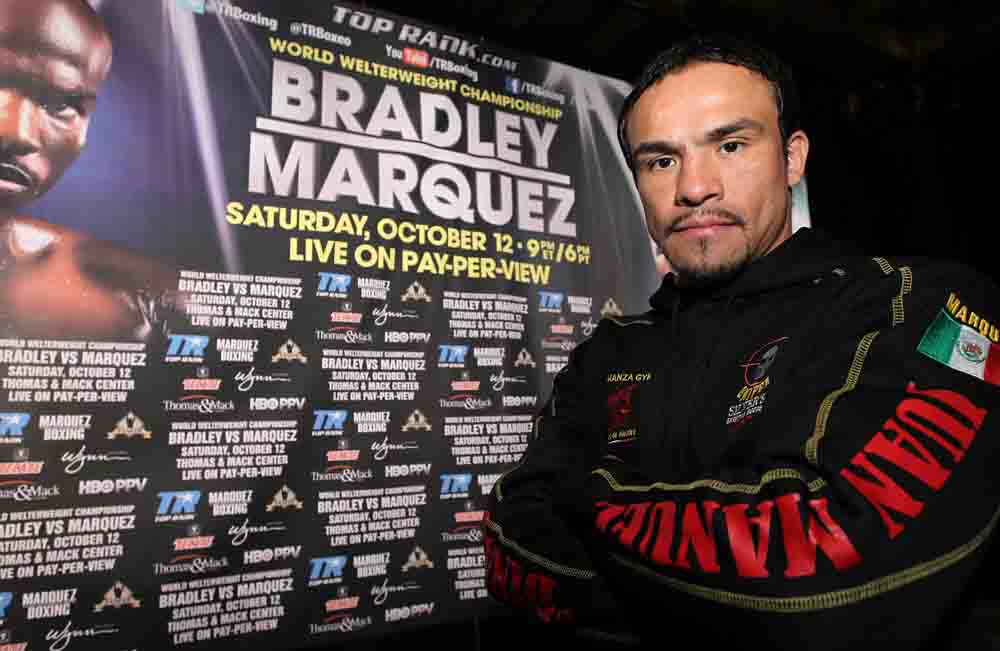 Con un entrenamiento público de los peleadores de respaldo, este lunes se pusieron en marcha en Las Vegas las actividades de la función Bradley-Márquez, quienes sostuvieron reunión con medios de comunicación en Los Angeles, California, mañana martes el gran arribo a Las Vegas de Juan Manuel y Timothy . El gran evento será transmitido por HBO en PPV y en México por Azteca 7, La Casa del Boxeo