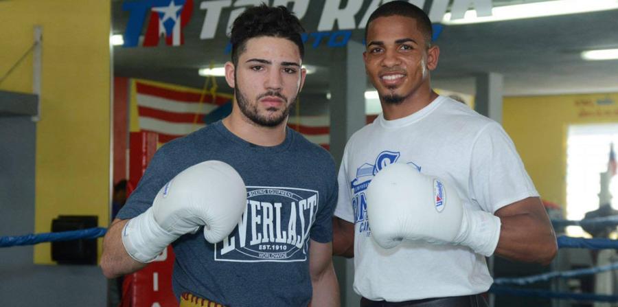 Félix Verdejo tuvo su primera sesión de guanteo con el invicto Julián “Hammer Hands” Rodríguez ayer, martes. (Suministrada / Peter Amador / Top Rank)