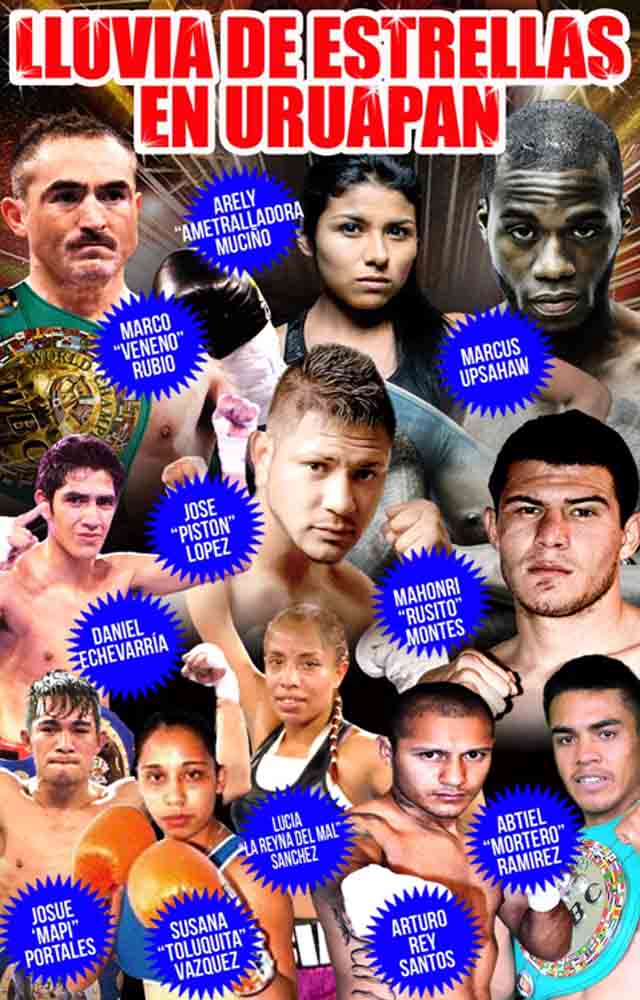 Todos los encuentros de la cartelera que presentan en conjunto Promociones del Pueblo y Hg Boxing, serán sumamente emocionantes y de gran nivel, por lo que las emociones están aseguradas. El popular “Veneno” Rubio disputa el cinto Continental de las Américas en peso medio ante el norteamericano Marcos Upshaw, mientas que los jóvenes prospectos “Pistón” López y “Russito” Montes disputarán la eliminatoria rumbo al título Plata superligero, la participación de la exmonarca universal Arely Muciño “La Sultana de Nocaut” y los campeones de ¿Quién Pinta para la Corona? Abdiel “Mortero” Ramírez, Daniel “Tokado” Echeverría y Josué “Mapi” Portales.