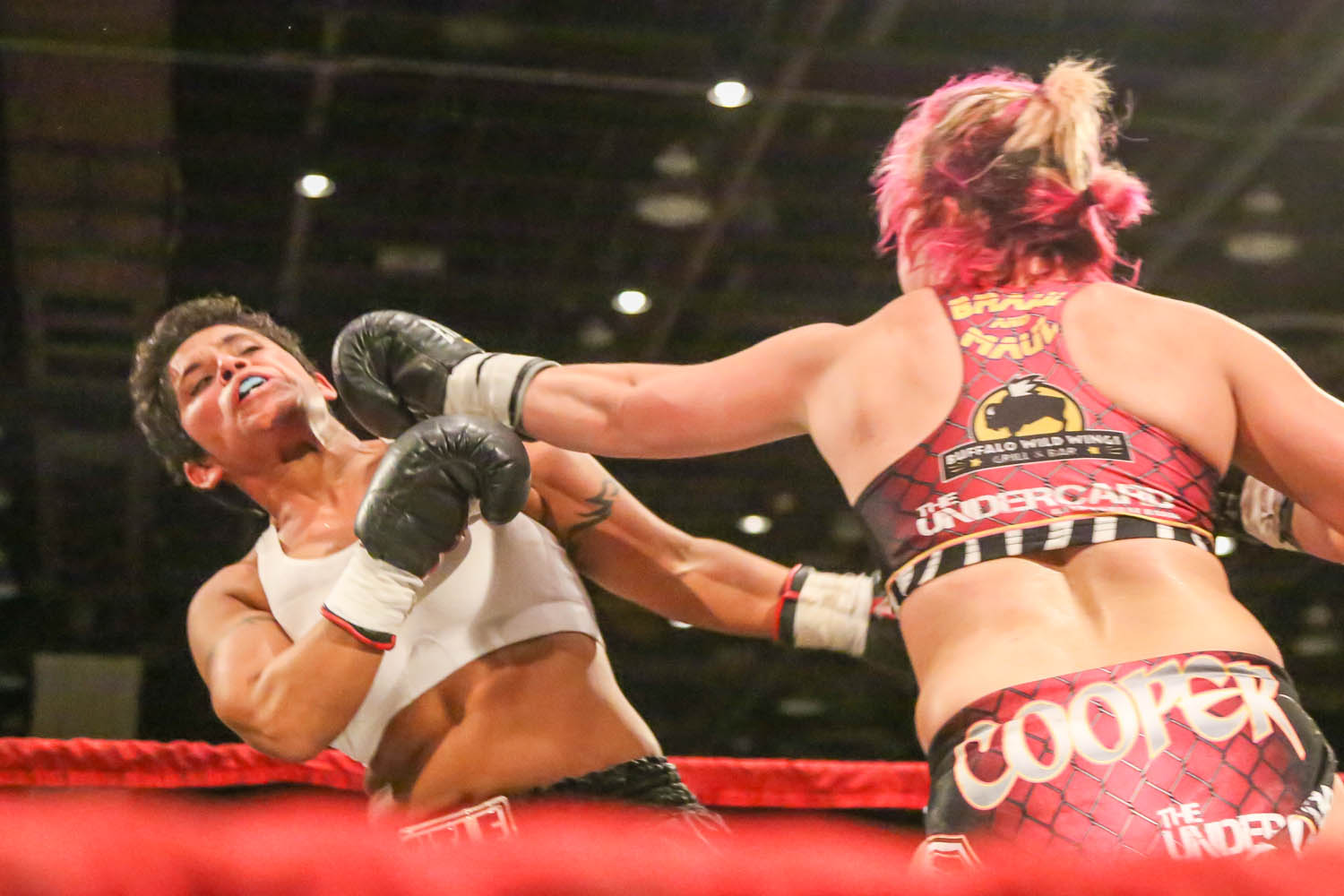 Another crowd pleasing match was the women’s fight between Amanda Cooper and Brenda Rodriguez. Cooper of Detroit was fortunate to get the decision in a four rounder over the ever persevering Rodriguez. Rodriguez, who hails from Muskegon, was a gamer throughout the bout and kept plodding her counters. Cooper was able to hold serve and her ability to move kept her out of serious trouble.