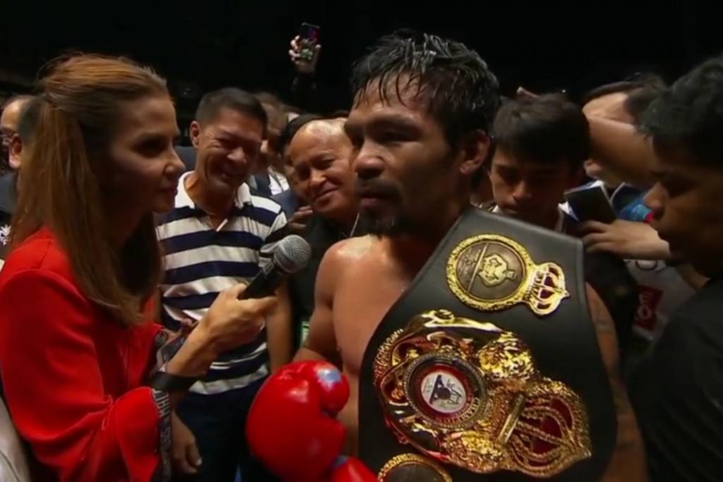 Manny dio gracias a Dios por la victoria y se le preguntó quién seguía, dónde y cuándo, pero respondió que por lo pronto ira a casa a relajarse y ver la mejor opción, pero si quisiera colgar los guantes en el closet se iría con el honor de salir por la puerta ancha con el cinturón de campeón en su cintura, pero por lógica sabemos que su siguiente rival quizá el año entrante será uno de los tres más elogiados en la división de 147.00 libras que son Keith Thurman, Errol Spence Jr o en su defecto Terrence Crawford y si se puede dar el lujo de elegir.