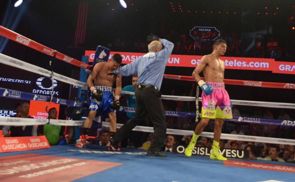Guerra se dedicó a obstaculizar el accionar del mexicano quien con potentes derechazos buscaba cerrarle las salidas, el poder del mexicano se hizo patente, al enviar a la lona al de Barranquilla, Colombia.