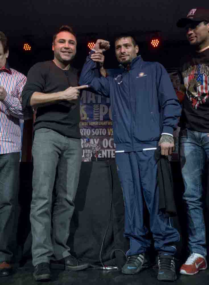 “Siempre supe que existía algo en mi que me llevaría a las alturas del boxeo mundial, pero también reconozco que sin la ayuda de Oscar de la Hoya y Golden Boy Promotions así como mi manager Mario Arano, no me encontraría donde estoy actualmente”, dijo Lucas “La Maquina” Matthysse, quien viajará el próximo 26 de septiembre a Los Ángeles.