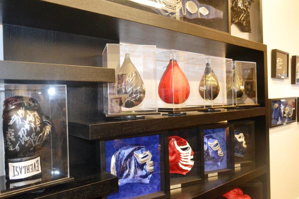 Regresando al museo, el Dr. Armendáriz ha logrado coleccionar cientos de artículos relacionados con el box y la lucha libre incluyendo posters, calzoncillos, zapatillas, vendajes, fotografías, máscaras, perillas, pinturas, batas, guantes y otros artículos.