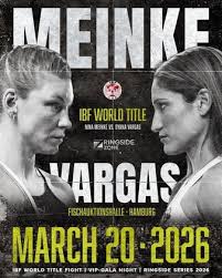 La campeona mundial alemana Nina Meinke (20-3, 4KOS) defenderá su campeonato pluma de la FIB ante la retadora dominicana Dyana Vargas (20-2-1, 13KOs) el próximo 20 de marzo en el Fischauktionshalle en Hamburgo, Alemania y llama la atención que el combate esta en boxrec pactado a la distancia de 12 asaltos con una duración de tres minutos cada uno.