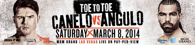 “TOE TO TOE: Canelo vs. Angulo,” a 12-round super welterweight fight taking place Saturday, March 8 at the MGM Grand Garden Arena in Las Vegas, is promoted by Golden Boy Promotions and Canelo Promotions and sponsored by Corona and AT&T. This event will be produced and distributed live by SHOWTIME PPV beginning at9:00 p.m. ET/6:00 p.m. PT. The event can be heard in Spanish using secondary audio programming (SAP).