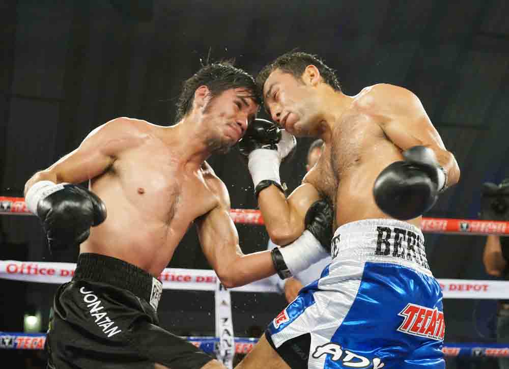 Desde el primer ‘round’ ambos peleadores se enfrascaron en un combate de mucha acción, pero Bernache (21-5-11 nocauts) saco su boxeo y controló los primeros cuatro ‘rounds’ con su contragolpeo de izquierda sobre Jonathan (15-11-2-5 nocauts), del quinto asalto en adelante el empuje de Lecona se fue imponiendo sobre el ‘Duende’ quien cambio de su guardia derecha a la izquierda hasta el octavo episodio.