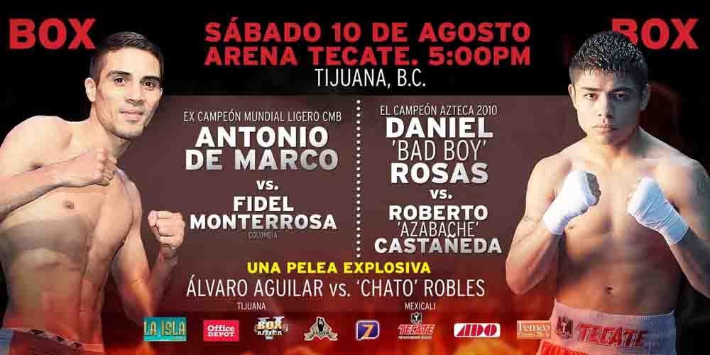 Antonio DeMarco (28-3-1, 21 ko’s) se estará enfrentando a 10 rounds en peso Superligero al colombiano Fidel Monterrosa (31-7-1, 25 ko’s), en una contienda que representa la reaparición del ex campeón mundial en su tierra adoptiva, ante un rival que ya contendió por título del mundo.