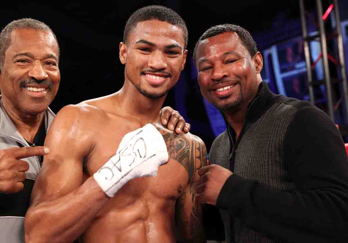 Pictured with dad/former world champion Shane Mosley(R) and grandfather Jack Mosley(L).