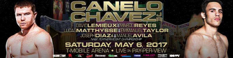 Canelo vs. Chavez, Jr. is a 12-round fight presented by Golden Boy Promotions and sponsored by Tecate, BORN BOLD, O’Reilly Auto Parts, Adriana’s Insurance and Interjet. Lemieux vs. Reyes is presented by Golden Boy Promotions in association with Eye of the Tiger Management, Matthysse vs. Taylor is a 10-round fight presented by Golden Boy Promotions in association with Arano Boxing and Star Boxing. Diaz, Jr. vs. Avila is presented by Golden Boy Promotions. The event will take place on Saturday, May 6 at T-Mobile Arena and will be produced and distributed live by HBO Pay-Per-View® beginning at 9:00 p.m. ET/6:00 p.m. PT.