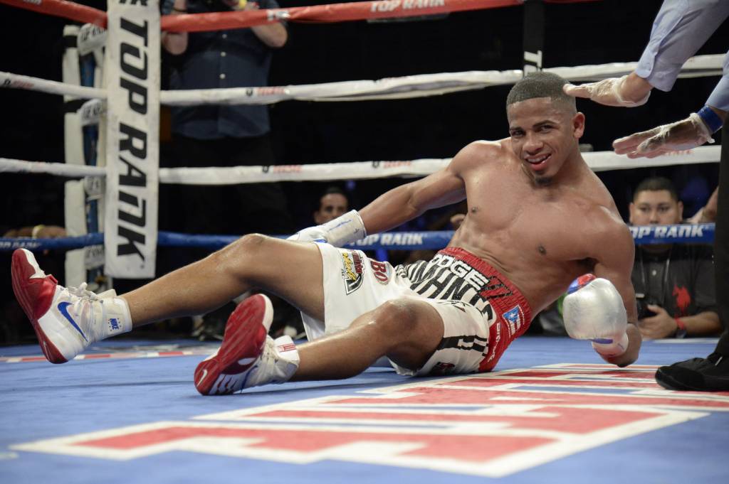 Félix Verdejo yace en la lona tras sufrir un resbalón durante el combate.>Carlos Rivera Giusti/EL VOCERO