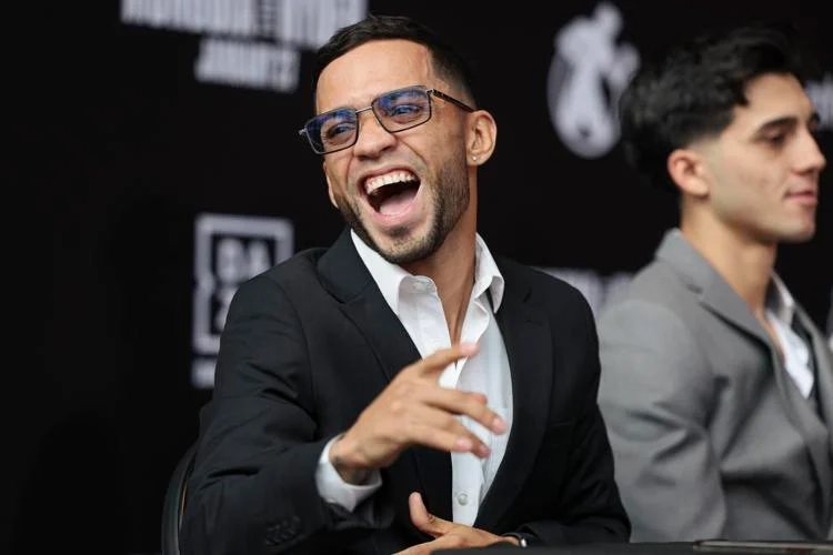 Oscar Collazo sonríe durante la conferencia de prensa del jueves en la que se promocionó su combate contra Reyneris Gutiérrez. Suministrada