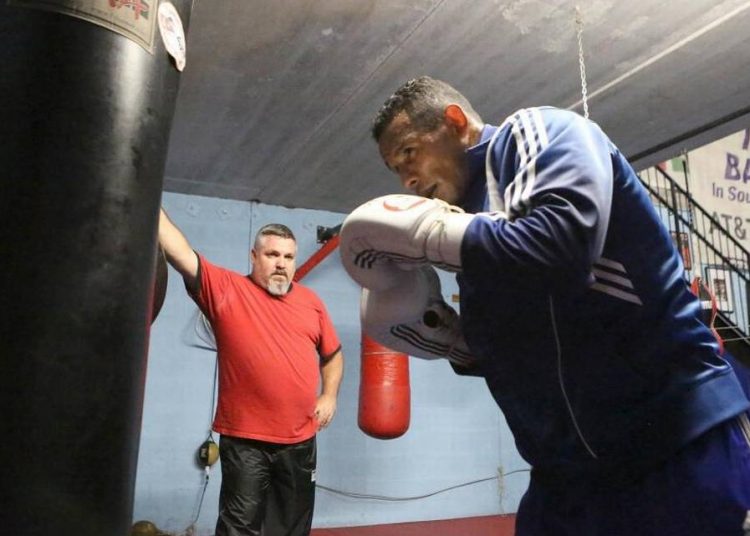 Osmiris “El Moro” Fernández observa el entrenamiento de uno de sus discípulos en Miami. Foto Tomada de El Nuevo Herald