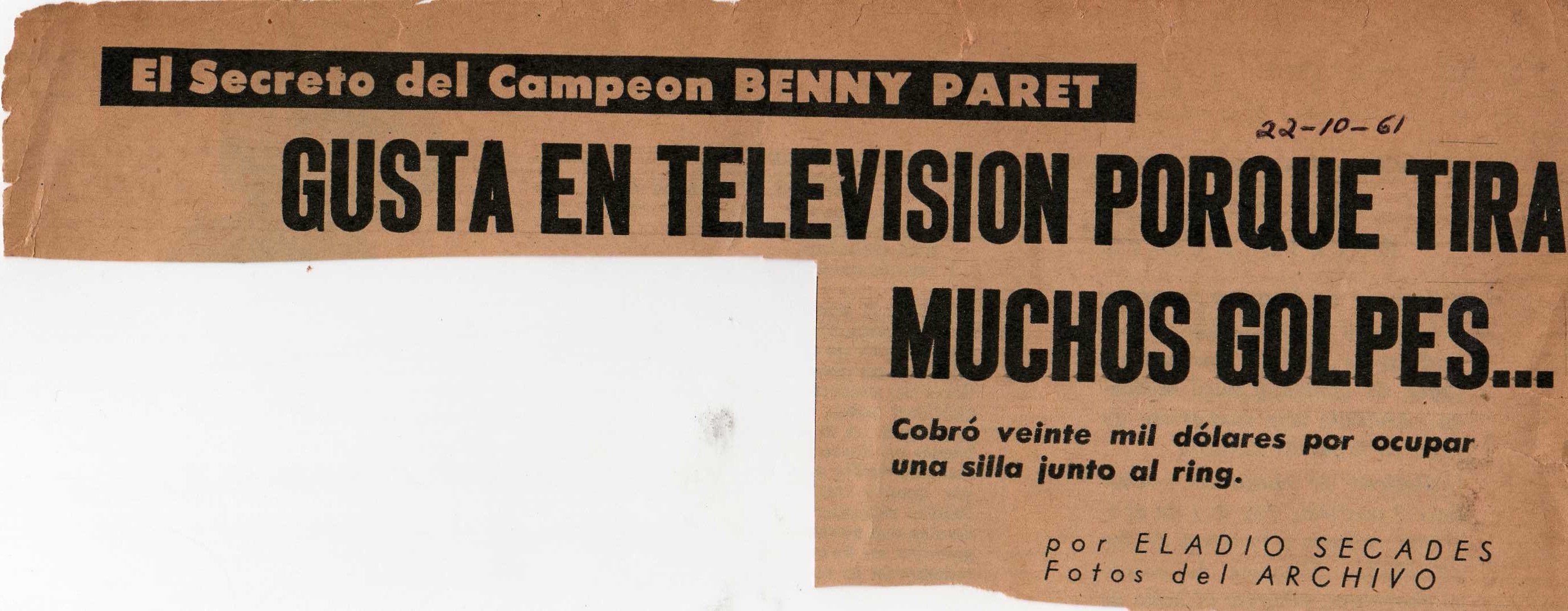 Con respecto a la televisión y Rigondeaux, la foto que puse es el titular de un material sobre Benny Paret, que escribiera para Bohemia el maestro cubano ELADIO SECADES en 1961; significa que, quien corra mucho y tire menos, no puede estar en la televisión americana, proberbio vigente desde antes de la fecha en que fue escrito en Cuba.