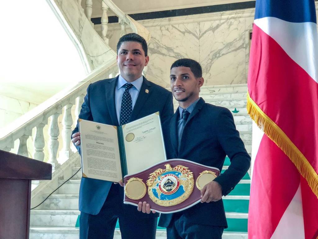 El púgil natural de Barrio Obrero, quien hasta hace poco estuvo trabajando en el establecimiento Michael Pizza en la Placita Antonio R. Barceló, de Santurce, fue reconocido hoy como ejemplo de superación en la Cámara de Representantes de Puerto Rico por el representante por el Distrito 1 de San Juan, Eddie Charbonier Chinea.