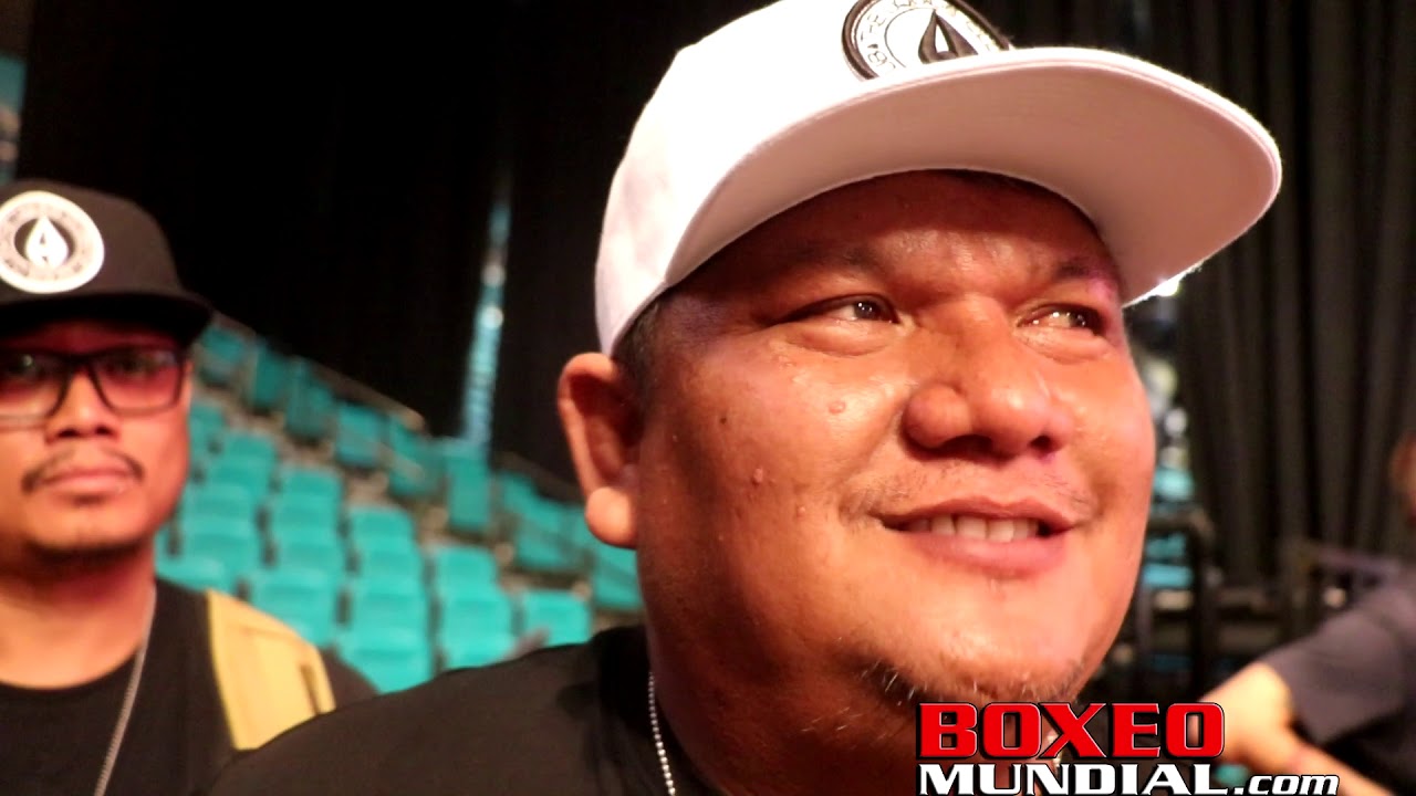 After the press conference we caught up with Manny’s trainer, Buboy to get his thoughts on Manny’s preparation for his fight with Thurman.